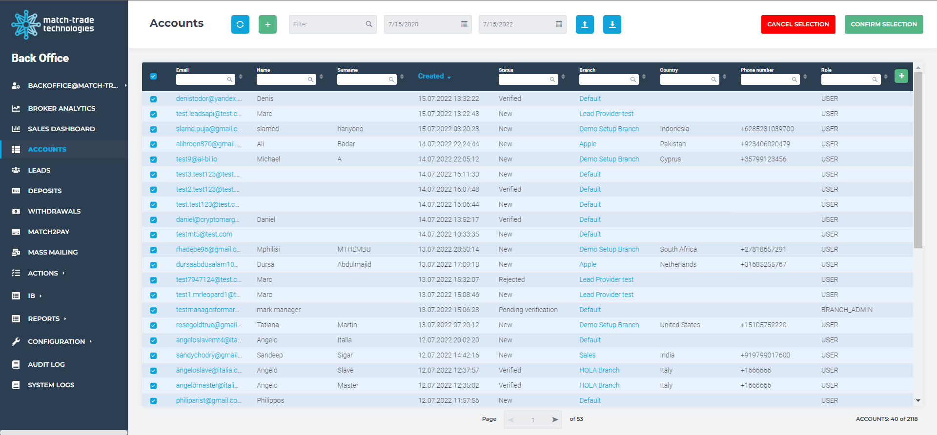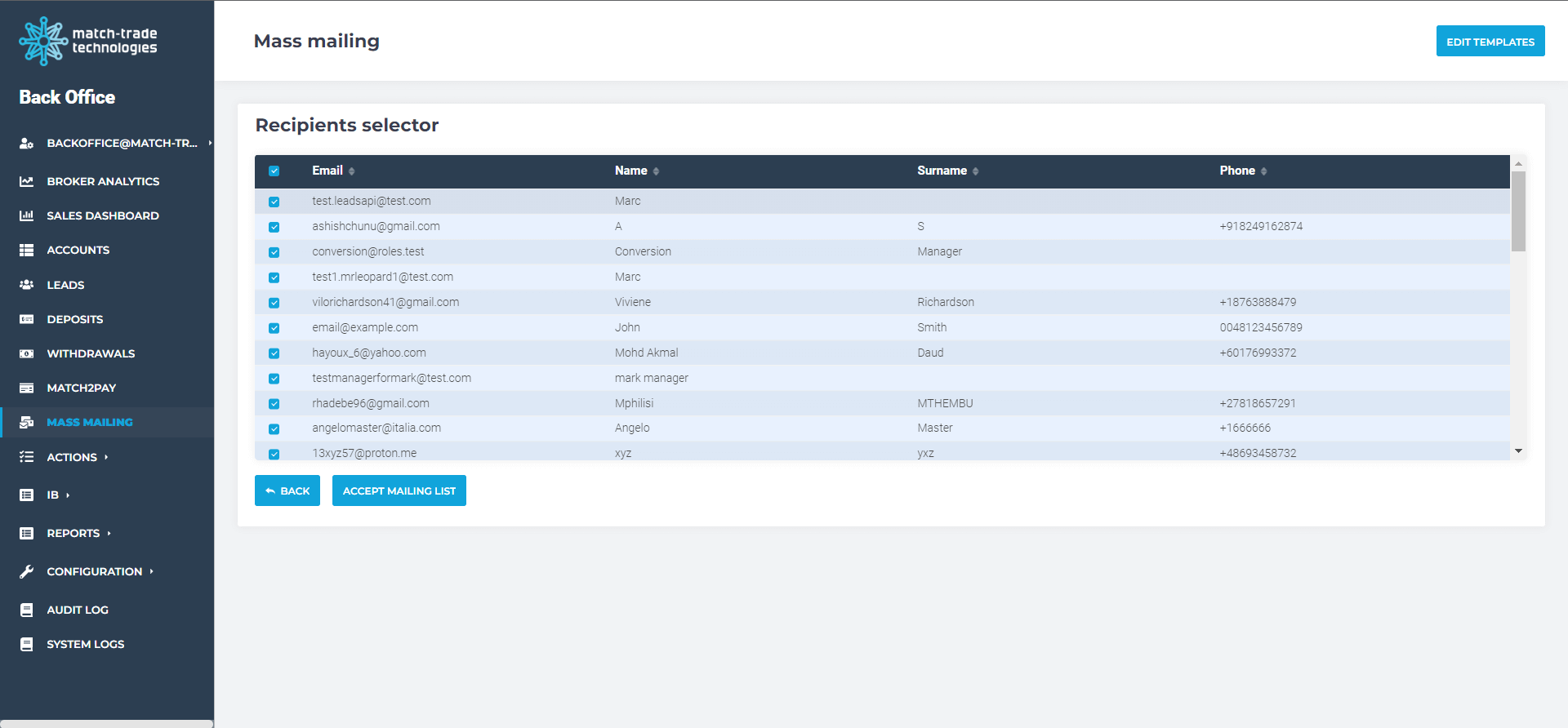 In July, we also developed the mass mailing options in our Forex CRM. The Mass Mailing button appeared in Accounts and Leads views. In mass mailing mode, Brokers can select multiple accounts to which the email will be sent. This makes mailing campaigns hassle-free and allows Brokers to reach even more clients.