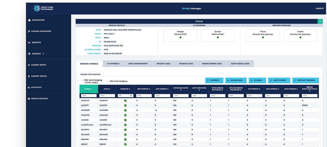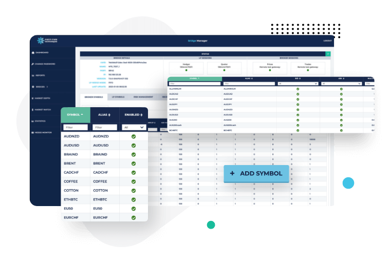 Use our web-based application – Bridge Manager for easy handling of A-Book and B-Book groups and clients. Manage data feeds with min/max spreads, price multipliers and order book modifications