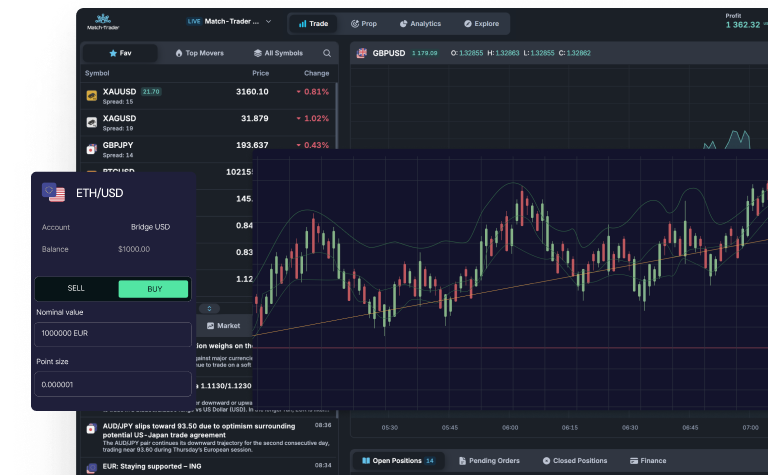 Leverage the Match-Trader platform, an independent trading technology developed in-house by forex industry experts, with seamless TradingView charts