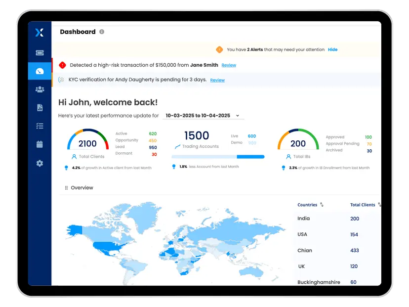 FYNXT Forex CRM is a purpose-built client management and operations platform designed specifically for FX, CFD, and multi-asset brokerages. Unlike generic CRMs adapted for financial services, FYNXT is architected around real brokerage workflows—covering onboarding, compliance, client lifecycle management, partner operations, and financial processes within a single, integrated system.