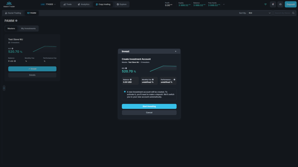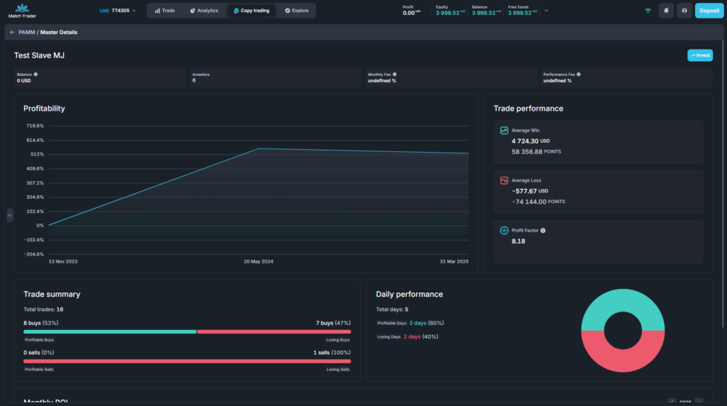 A redesigned PAMM module (Percent Allocation Management Module) has been introduced within the Match-Trader platform, delivering a completely modernized yet familiar user experience within the Social Trading suite. While sporting a sleek, contemporary design with enhanced usability, the interface preserves all existing functionality from the legacy system. All essential tabs and features for production-ready PAMM operations are fully implemented, with exhaustive cross-platform testing ensuring a flawless user transition and performance across various resolutions and mobile devices.