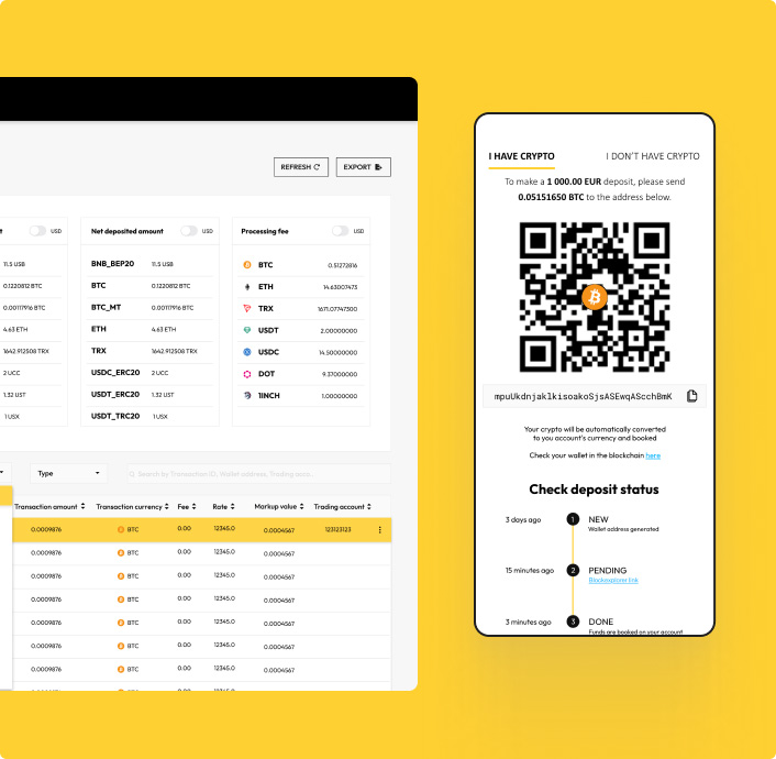 Match2Pay allows collecting and exchanging crypto in a fully automated way and depositing it straight to the client’s account.