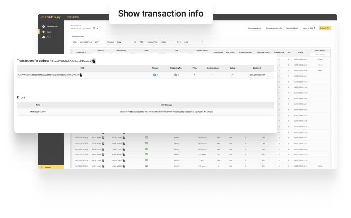 Match2Pay software was developed by Match-Trade Technologies, a software company catering to the Forex/CFD brokers for more than ten years. Our software and support are focused on the demanding customers, who value high quality, reliability and speed of service. We are also a part of the ecosystem with many cashiers and CRMs having our crypto gateway integrated already, which should make switching to us relatively easy. We also support integrations via chat, not tickets. And last but not least, thanks to our scale and optimised costs, we can offer competitive pricing to the merchants with existing and proven flow.