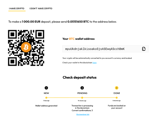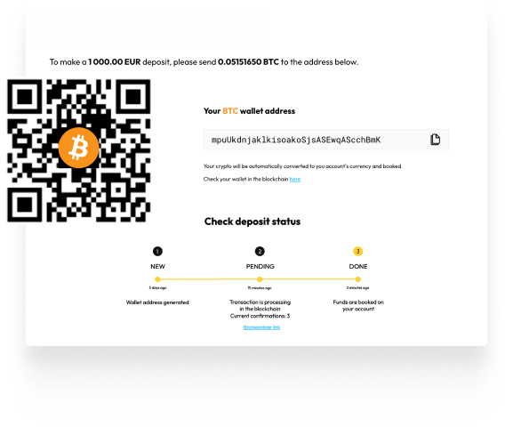 To make the payment process smooth for your customers, in the addition to the generated wallet address, you can send a link to the specially developed payment page with easy instructions to your customer.