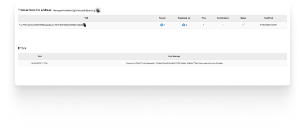 There your customer can check the payment status and check the wallet in the blockchain.