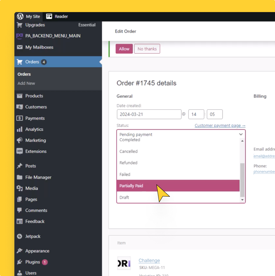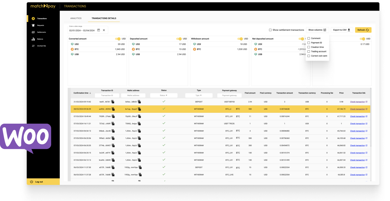 If a trader generates multiple wallet addresses during checkout, you can view all the payment IDs that were specifically generated for processing each order in your WordPress system. Additionally, Match2Pay clients can monitor the transaction status directly within the WordPress Admin Panel, eliminating the need to access other sites or systems. .